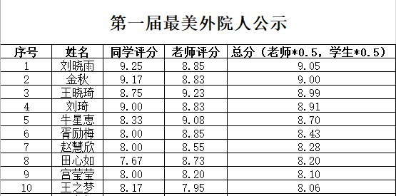 根据《350vip8888新葡的京集团“最美外院人”评选通知》要求,本着公开、公平、公正的原则,经过个人申请、资格审查、现场答辩等环节,最终确定350vip8888新葡的京集团第一届“最美外院人”名单,现公示如下,接受广大同学监督。如有异议,请在公示期间反映。