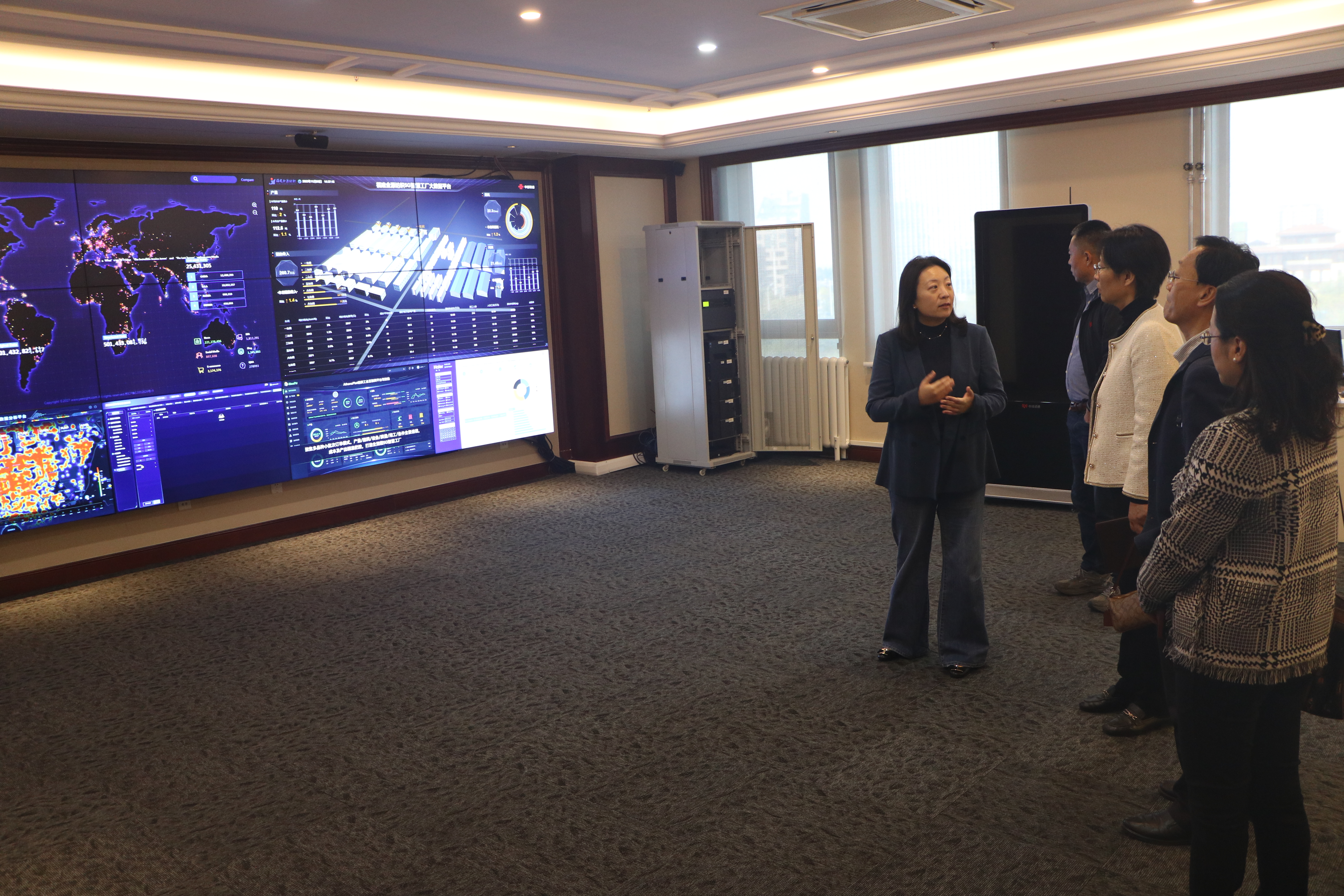 11月8日,350vip8888新葡的京集团党委书记曲斌艳、副院长康宁、党委副书记刘尧和翻译硕士教育中心主任房钰一行赴中译语通科技(青岛)有限公司调研交流,并走访校友。