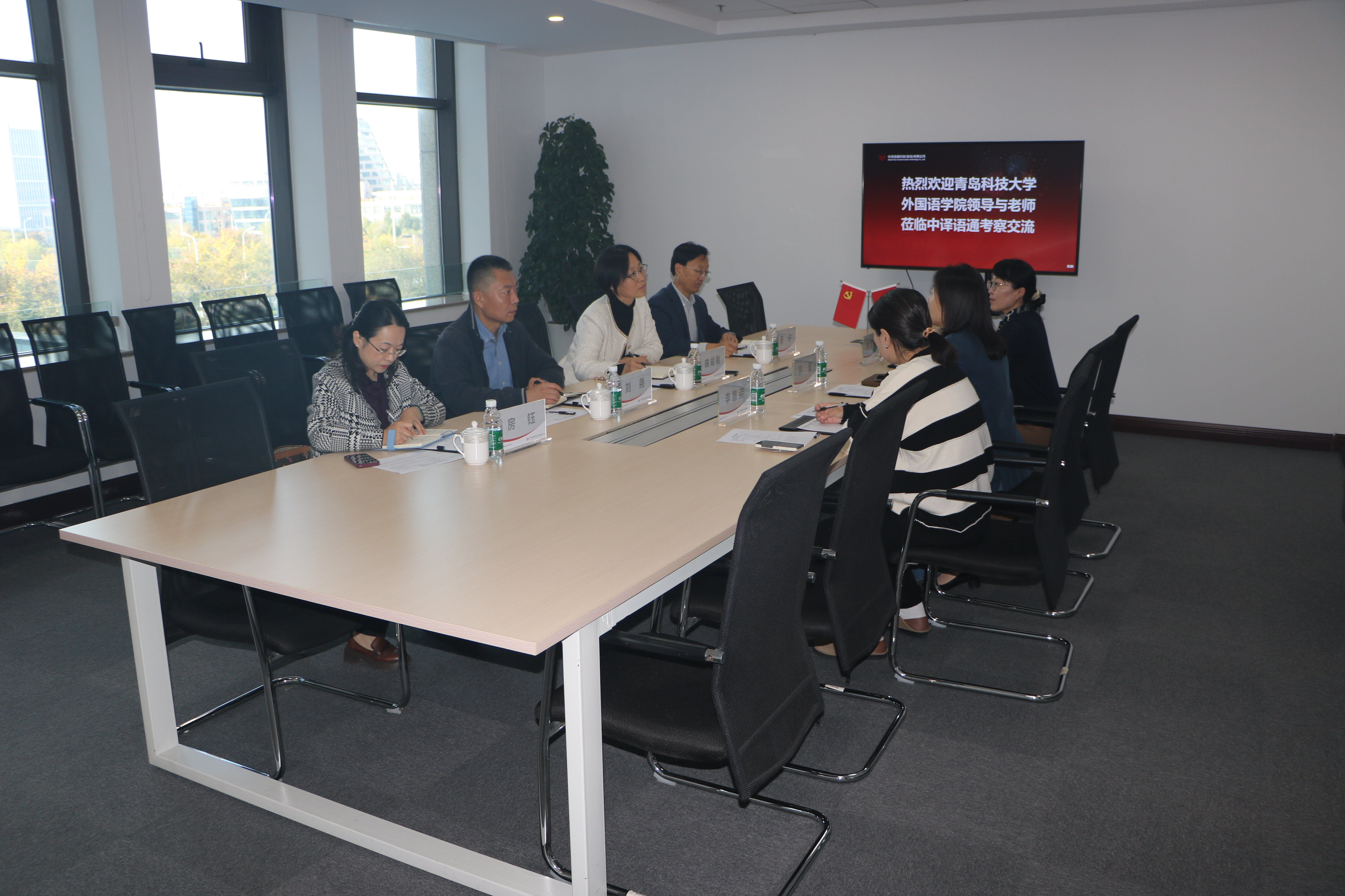 中译语通科技(青岛)有限公司语言科技事业部总经理吕倩、翻译部副总监李慧姿和经理焦宗艳对曲斌艳一行的到来表示欢迎,并简要介绍了公司的发展历程和核心业务板块,对新葡京官网校友的工作情况给予了高度评价。曲斌艳介绍了新葡京官网专业建设情况以及与中译语通近年来的合作,希望双方在校企合作共建、人才培养、师资队伍建设和就业等方面寻求更多的合作机会。座谈会上,双方针对新形势下校企合作的模式创新、企业对外语人才的需求以及对学校人才培养方案和教育教学的意见建议进行了深入交流,并确定未来双方在人才联合培养和师资队伍共建等方面展开深入合作。