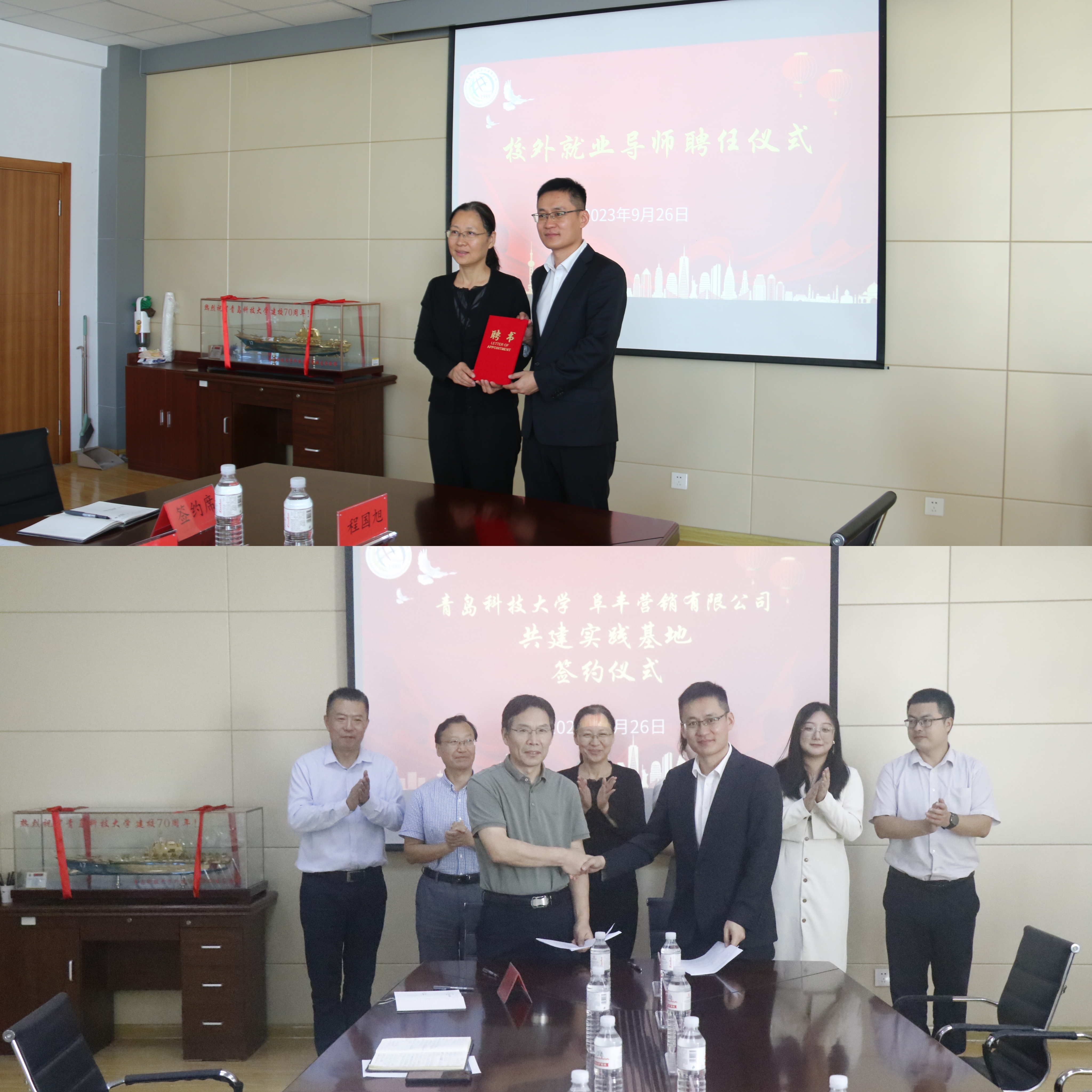 为推动双方更加深入开展合作交流,座谈会上350vip8888新葡的京集团聘请阜丰集团营销总公司全球人力资源总监夏龙飞为学院校外就业导师,并和阜丰营销有限公司签订共建实习实践基地框架协议。