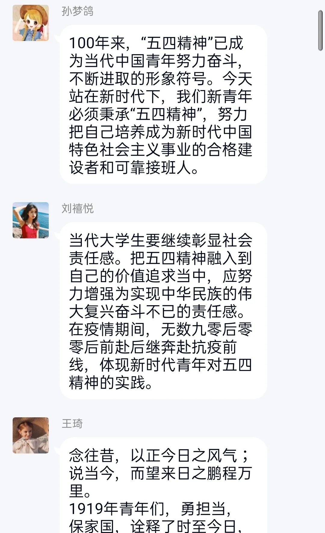 周恩来总理说过:“青春是奋斗最亮的底色,青春理想、青春活力、青春奋斗是中国精神和中国力量的生命力所在。”青春如初春,如朝阳,如百卉之萌动,如利刃之新发。在五四青年节到来之际,350vip8888新葡的京集团2019级各班积极响应院系要求,在五月一号开展了“传承五四精神,弘扬时代先锋”主题班会活动。