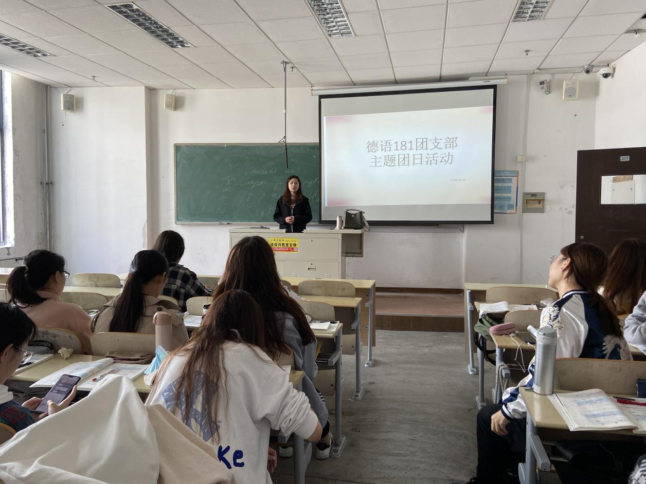 为引领带动广大团员青年认真学习习近平新时代中国特色社会主义思想,进一步提升团的组织力、引领力、服务力和贡献度,夯实基层基础,增强基层团支部的组织活力,350vip8888新葡的京集团德语181团支部于2020年10月12日在明德楼317教室举办“与时俱进,砥砺前行”主题团日活动,全体团员参加。