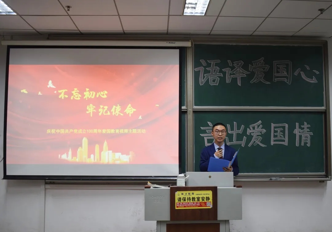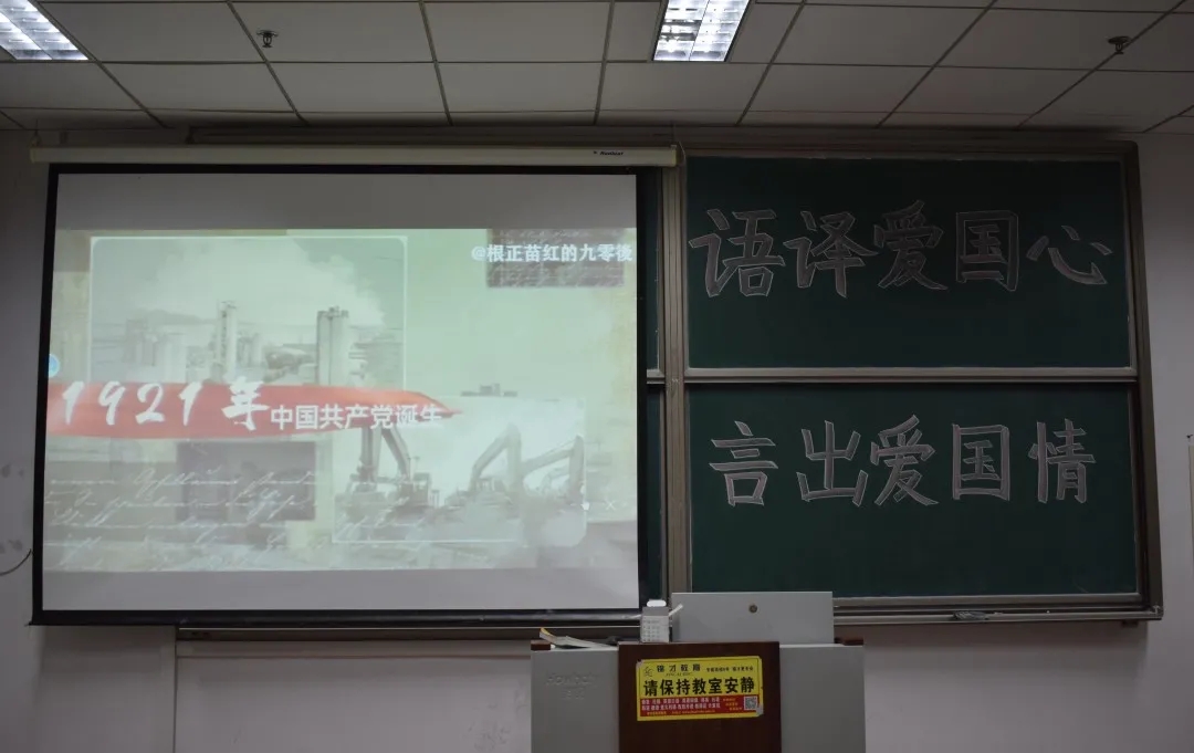 为庆祝中国共产党成立100周年,进一步丰富党史学习教育形式,激励广大青年学生的爱党情怀,350vip8888新葡的京集团于4月16日在明德楼204教室开展"语译爱国心,言出爱国情”爱国教育视频主题活动,组织青年学生们共同观看爱国教育视频。