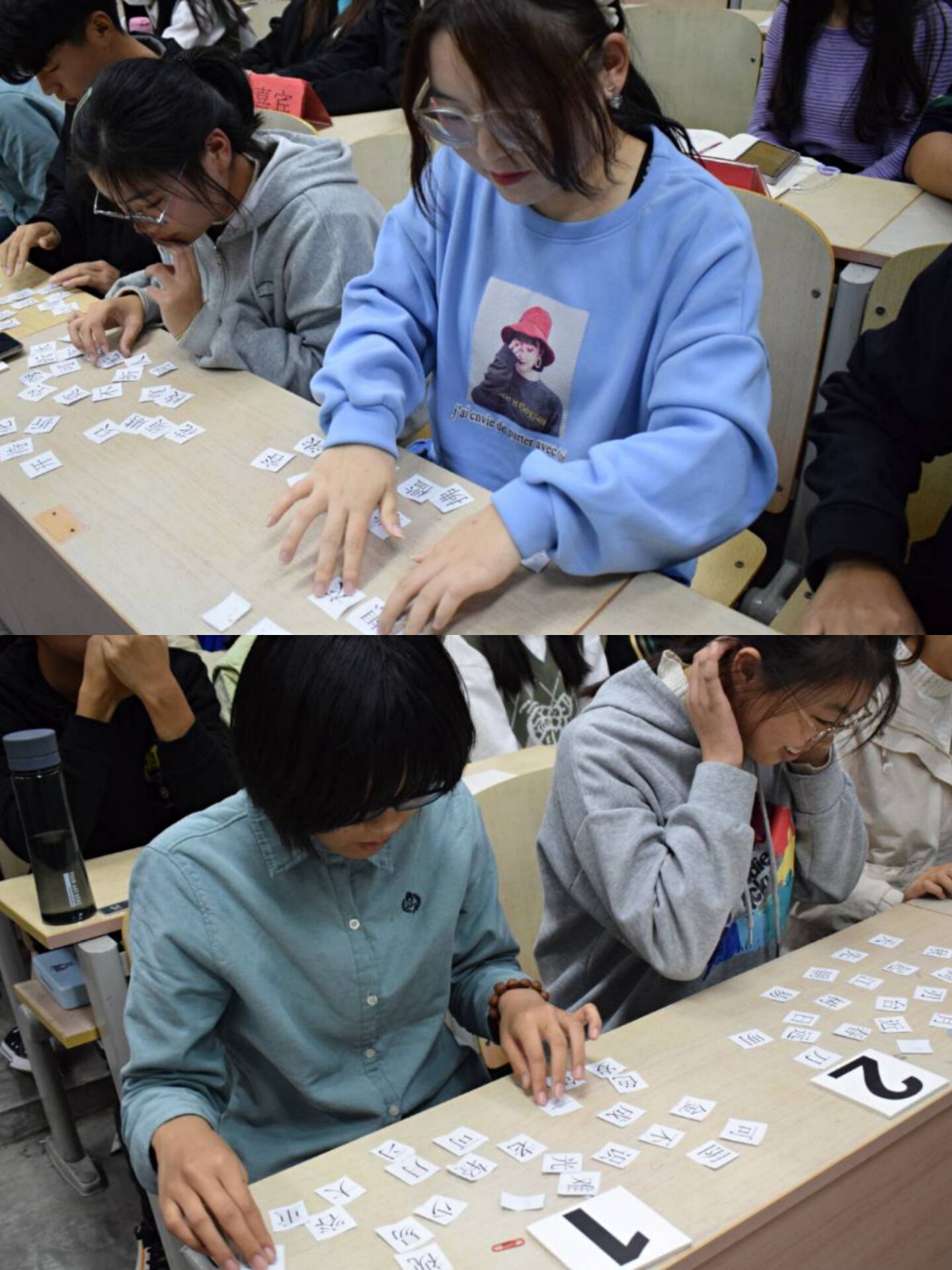 此次诗词大会受到同学们广泛关注,题目丰富,活动新颖,同学们踊跃报名参与。本次比赛共两大回合,第一回合为小组赛。在第一节抢答赛中,选手们个个火眼金睛,能够快速、准确的找出诗句中的错误。在第二节抢答赛中,选手们两两搭档,互相配合,积极争夺回答问题的机会。第二回合为个人赛——连连看。第一回合晋级的九位选手神采奕奕,面对打乱的诗句沉着冷静,稳定发挥。第二节决胜战中,三位选手充分运用自己的知识自信答题、一展风采。同学们在积极参与比赛的过程中,不仅感受到了比赛的激烈,更体会到了诗词的魅力。