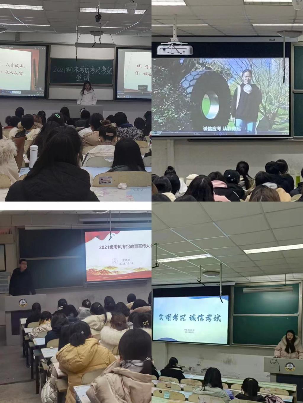 2021年秋季学期期末考试在即,为进一步加强学风建设,严肃考风考纪,加强诚信教育,营造一个公平公正的考试环境,12月17日晚,350vip8888新葡的京集团四个年级在弘毅楼教室内同时开展了2021年秋季学期考风考纪教育宣传大会。