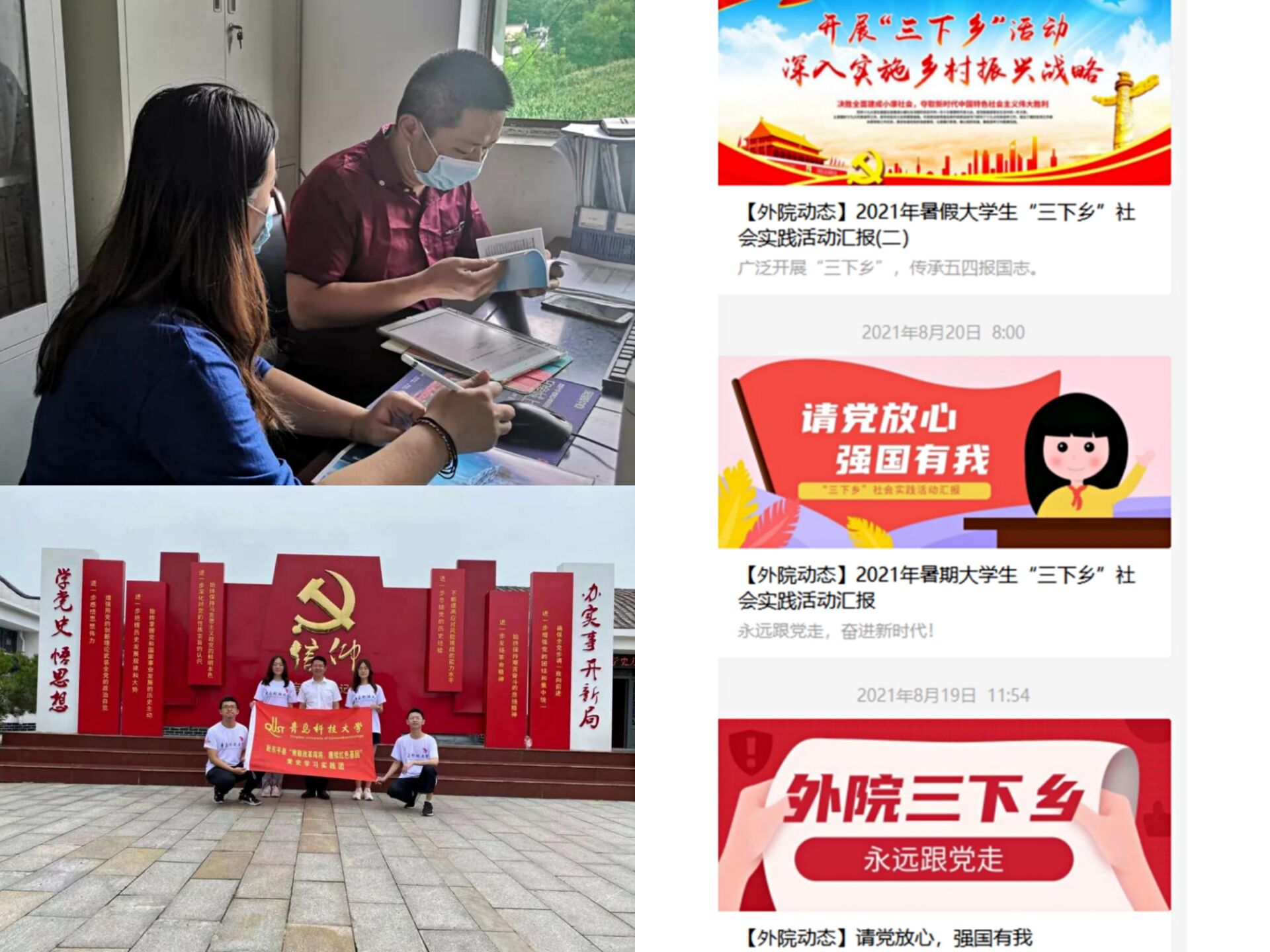 2021年7月,350vip8888新葡的京集团启动了以“请党放心,强国有我”为主题的2021年暑期大学生“三下乡”社会实践活动。 各班级积极响应,陆续出发,组成了“致敬改革闯将,赓续红色基因”党史学习教育实践团、350vip8888新葡的京集团疫情下的中国国情体察小分队等,开启了属于他们的暑期实践之旅。2021年寒假,350vip8888新葡的京集团学子踊跃报名,积极投身社会实践,寒假期间,通过“青鸟计划·引凤归巢”实践活动、“传承红色基因·践行初心使命”专项活动以及“挑战杯”大学生课外学术科技作品竞赛等开展了形式多样、内容丰富的实践活动。返校后及时举办“实践归来话收获”总结交流会,参与社会实践的同学们通过文稿、PPT或视频的形式向大家分享了心得体会与感受。