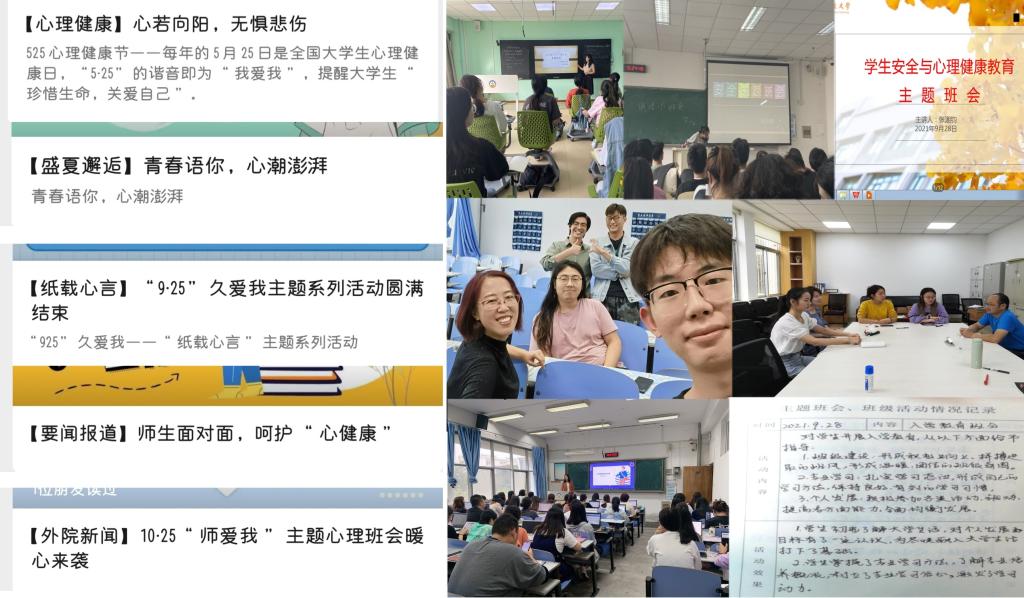 9月25日,学生工作处和研究生院联合下发了《350vip8888新葡的京集团关于进一步加强学生安全和心理健康教育的工作方案》,以“八个一”为主要内容的学生安全和心理健康教育工作就此展开。“3·25”善爱我主题活动中,同学们用心设计了心理健康宣传海报;青科大350vip8888新葡的京集团与数理学院“5·25”心理健康日活动在南苑操场火热开展;纸载心言——“9·25”久爱我主题系列活动中,新葡京官网与中德学院通过信封交换活动有效地帮助同学们排解心灵上的困扰,拂去心理上的迷茫。