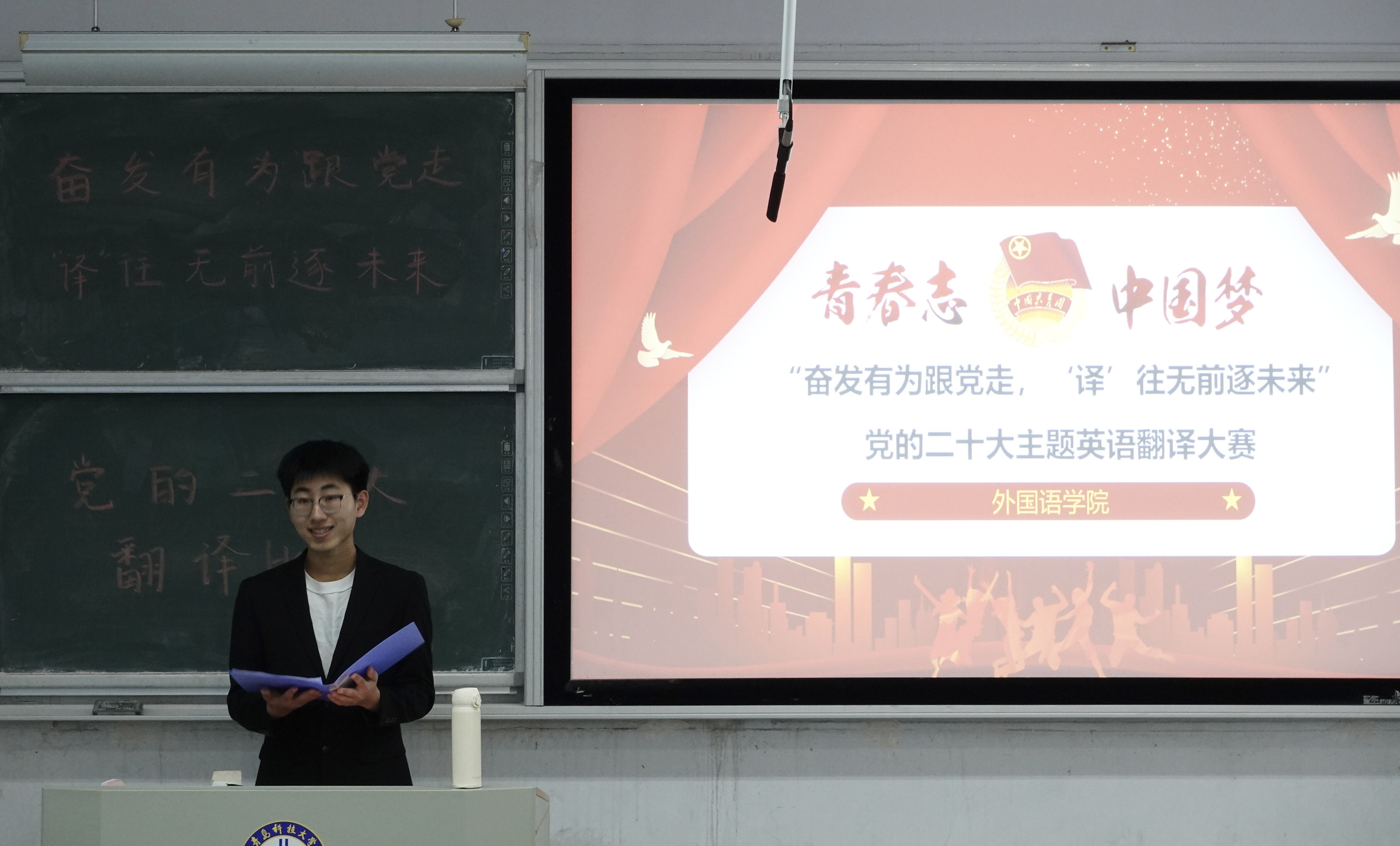 为了学习贯彻党的二十大精神,更好地通过英语向世界讲好中国故事,传播中国声音,展现英语独特的语言魅力和外院学子的精神风貌,350vip8888新葡的京集团于12月6日下午2:30在弘毅楼E105教室举办了“奋发有为跟党走,‘译’往无前逐未来”党的二十大主题英文翻译大赛活动。