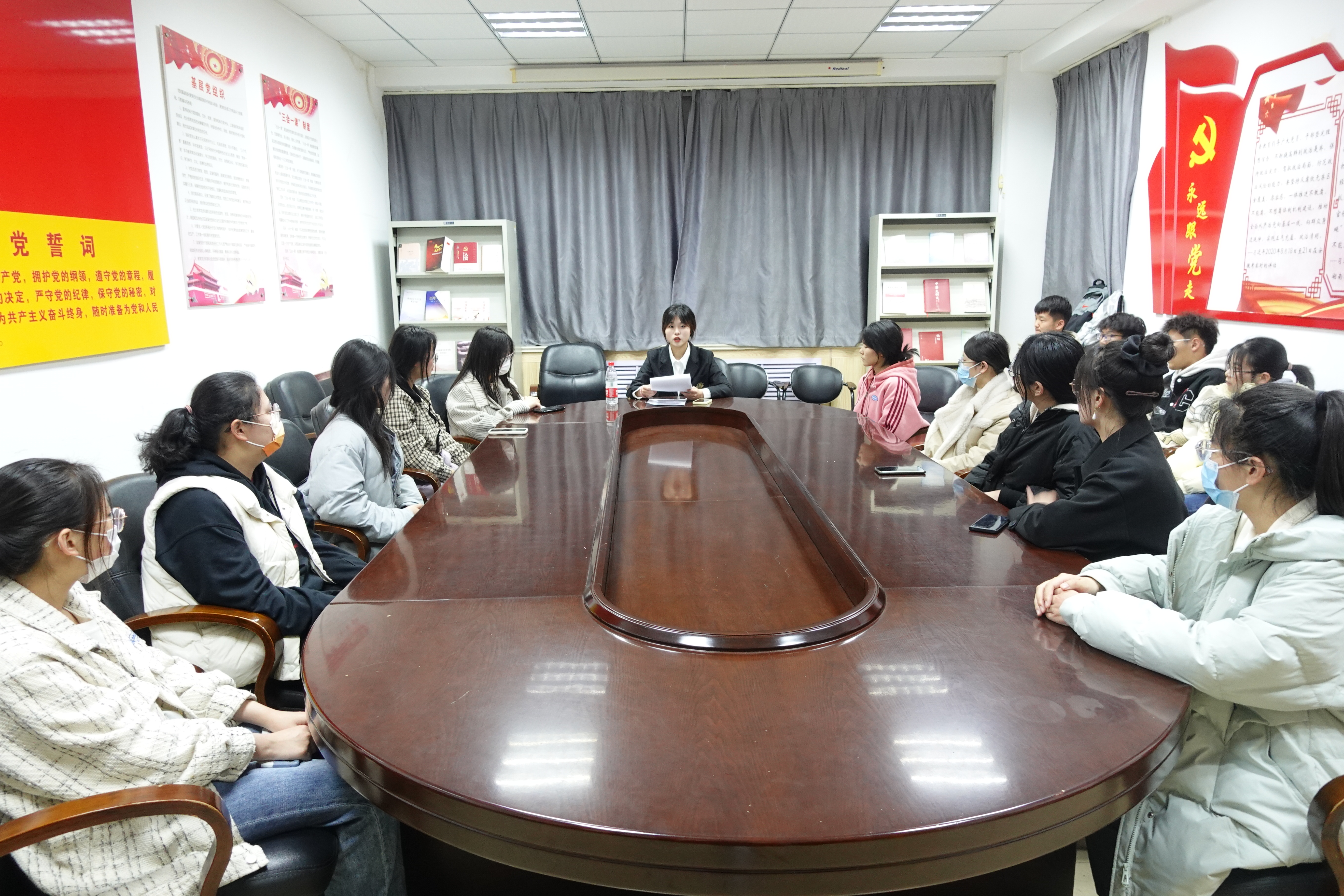 会上,陈俊霏同学首先对沂蒙地区革命和沂蒙精神的产生与同学们展开探讨。她回望了无数可歌可泣的革命英雄儿女,如沂蒙六姐妹、沂蒙母亲、沂蒙红嫂,他们这种大无畏的革命精神被高度概括为沂蒙精神。随后,她讲述了新时期沂蒙精神代表人物与大美新临沂的发展,结合疫情时期的志愿服务,阐释了沂蒙精神与雷锋精神对青年人的意义。疫情时期,无数科大学子主动请缨,参与到志愿者的队伍中来。他们用行动践行沂蒙精神和雷锋精神,将这两种精神内化于心、外化于行,这是我们青年应当学习的榜样。