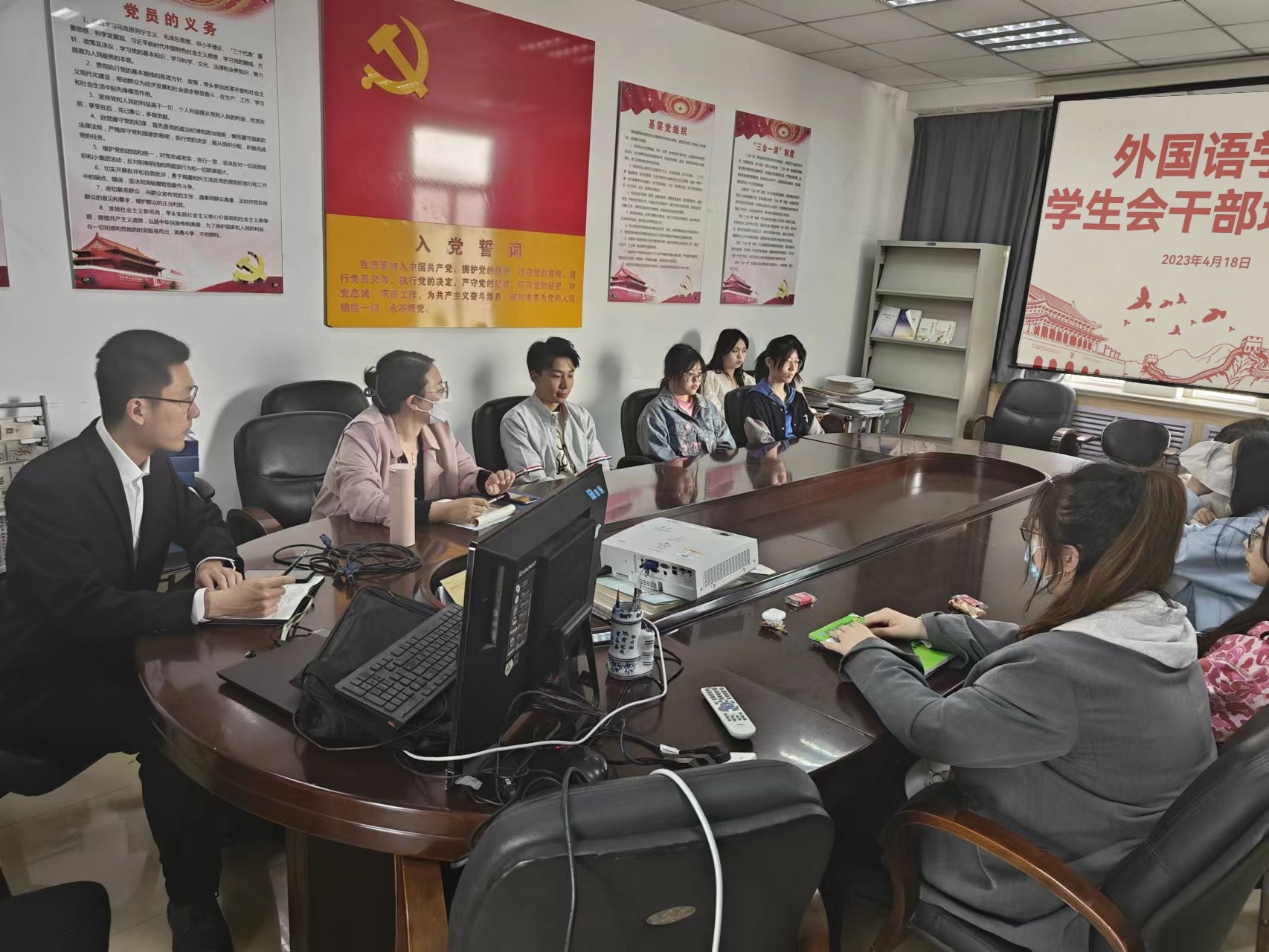为更好地推动今后学生会工作的开展,350vip8888新葡的京集团团委书记兼学工办主任刘妍君老师和张湘钧老师于4月18日下午在外院502室组织开展学生会干部培训会,学生会主席和各部门部长参加了会议。