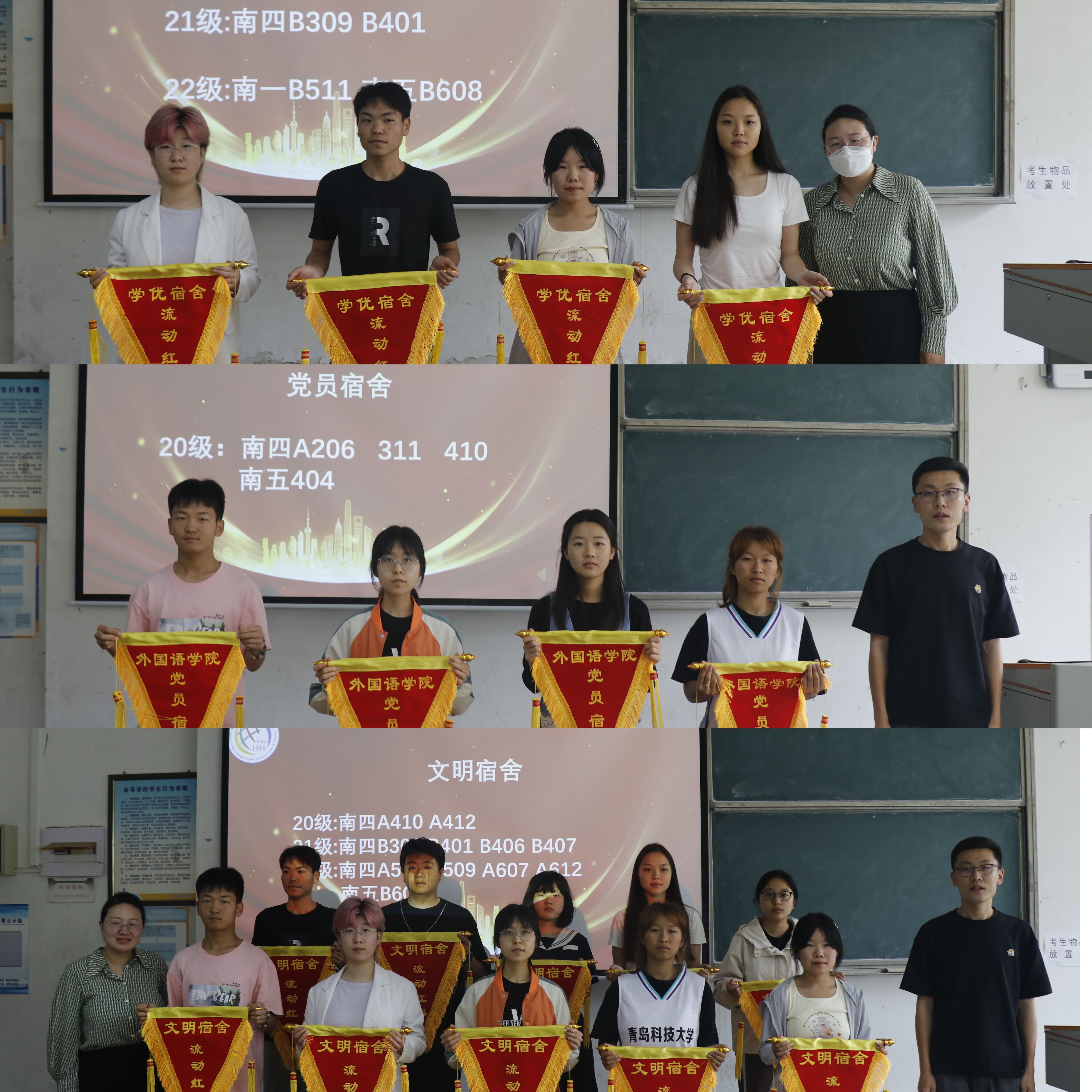 首先,350vip8888新葡的京集团学工办主任刘研君老师祝贺了获奖宿舍,强调了创建整洁文明宿舍环境的重要性,鼓励同学们营造良好的寝室文化氛围。随后,优秀宿舍学生代表宋安南做了分享,他表示良好的宿舍环境让我们心情舒畅,学习更加愉快。接下来,学工办两位老师分别为学优宿舍、党员宿舍、文明宿舍颁发锦旗。