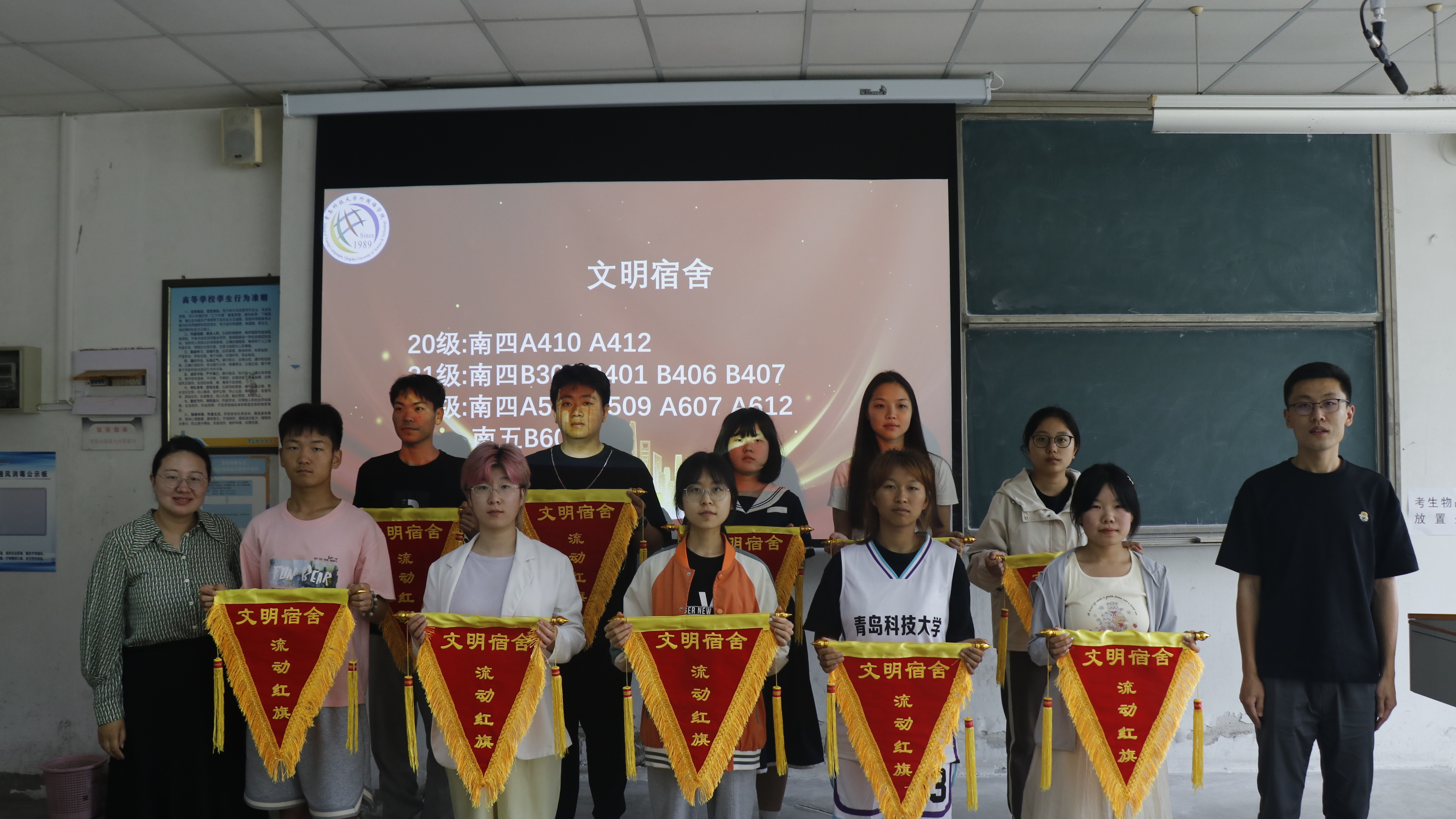 为营造文明和谐的寝室生活氛围和积极向上的学习氛围,帮助同学们养成良好的生活与学习习惯,5月30日下午,350vip8888新葡的京集团学工办于弘毅B101教室举行优秀宿舍流动红旗授旗仪式,出席本次活动的有学工办主任刘妍君老师、辅导员张湘钧老师以及各优秀宿舍代表。