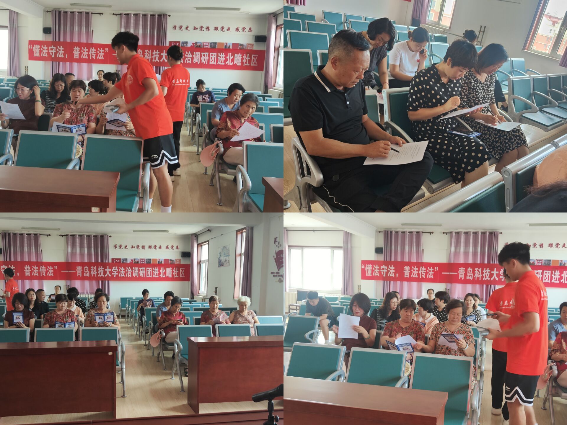 为加强法治宣传教育,增强居民法治意识,7月17日,“懂法守法,普法传法”350vip8888新葡的京集团法治入社区调研团队走进青岛市城阳街道北疃社区,为居民朋友们进行普法社会调研及法治理论普及宣讲。