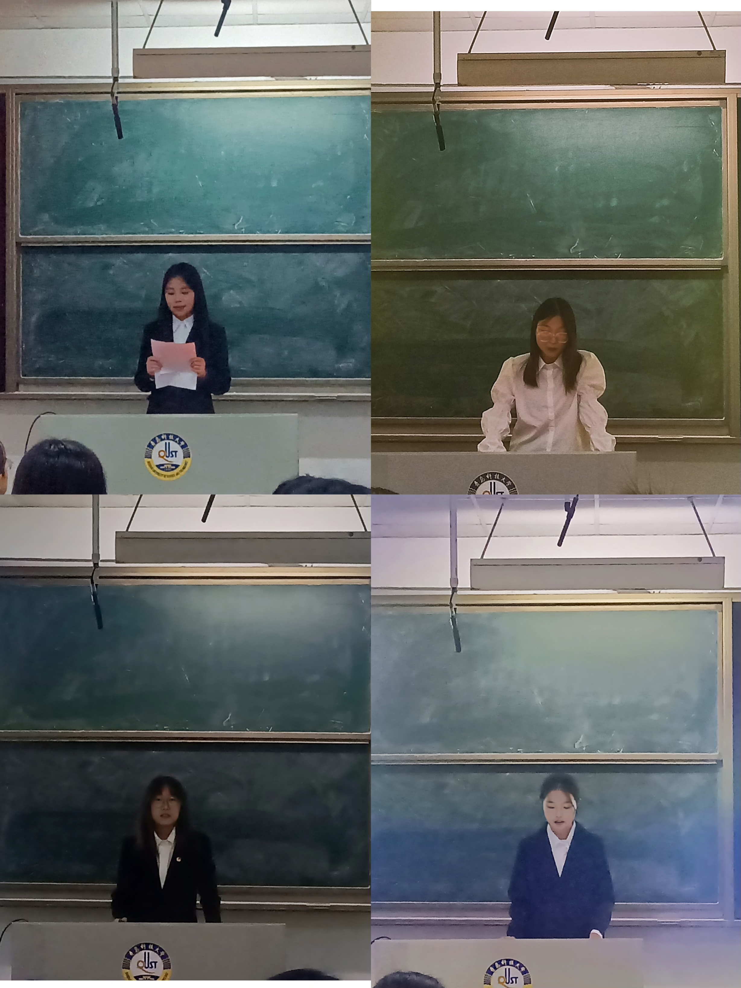 随后,优秀班长代表张丹忆同学、优秀团支书代表庞雯馨同学、优秀心理委员代表周畅同学和优秀宣传委员代表郑晓敏同学分别进行了心得体会与经验分享。张丹忆同学分享了自己的个人经历,并强调作为班委能为热爱的事情忙碌是一种幸福;庞雯馨同学告诉各位班委,重要的不是取得荣誉的瞬间,而是奋斗的整个过程;周畅同学表示要学会承担心理委员的责任,共同为建设优秀班级而奋斗;郑晓敏同学则强调要提升自己的能力,为班级建设贡献自己的力量。
