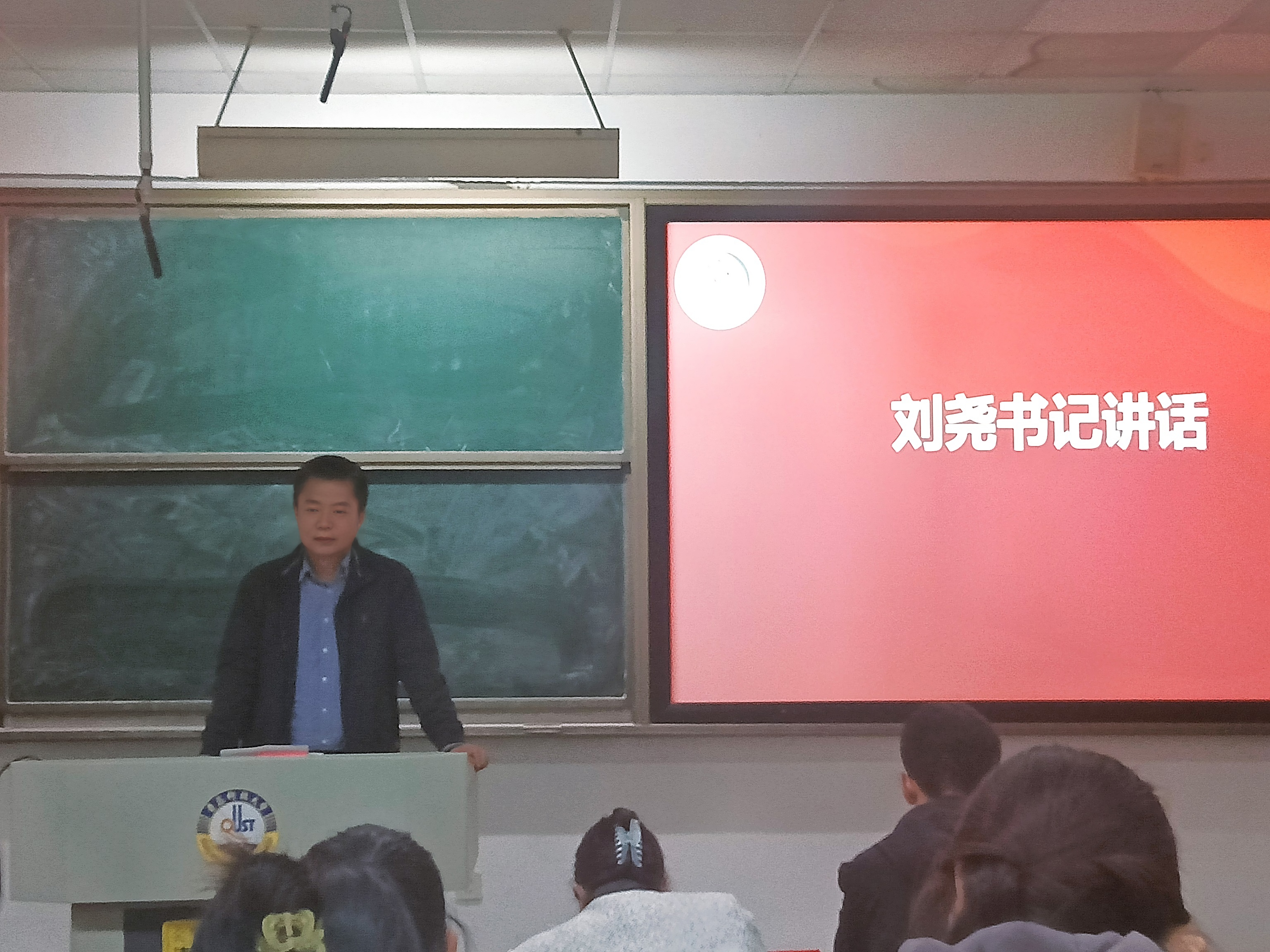 刘尧书记进行发言,表达了对优秀班委的赞扬,并围绕“什么才算一名合格的班委”这一问题,对各位班委的工作提出有建设性的建议,比如班委要做好自身本分工作,相互合作、班级中出现问题要懂得及时有效反馈给辅导员以及为班级做必要的牺牲等。