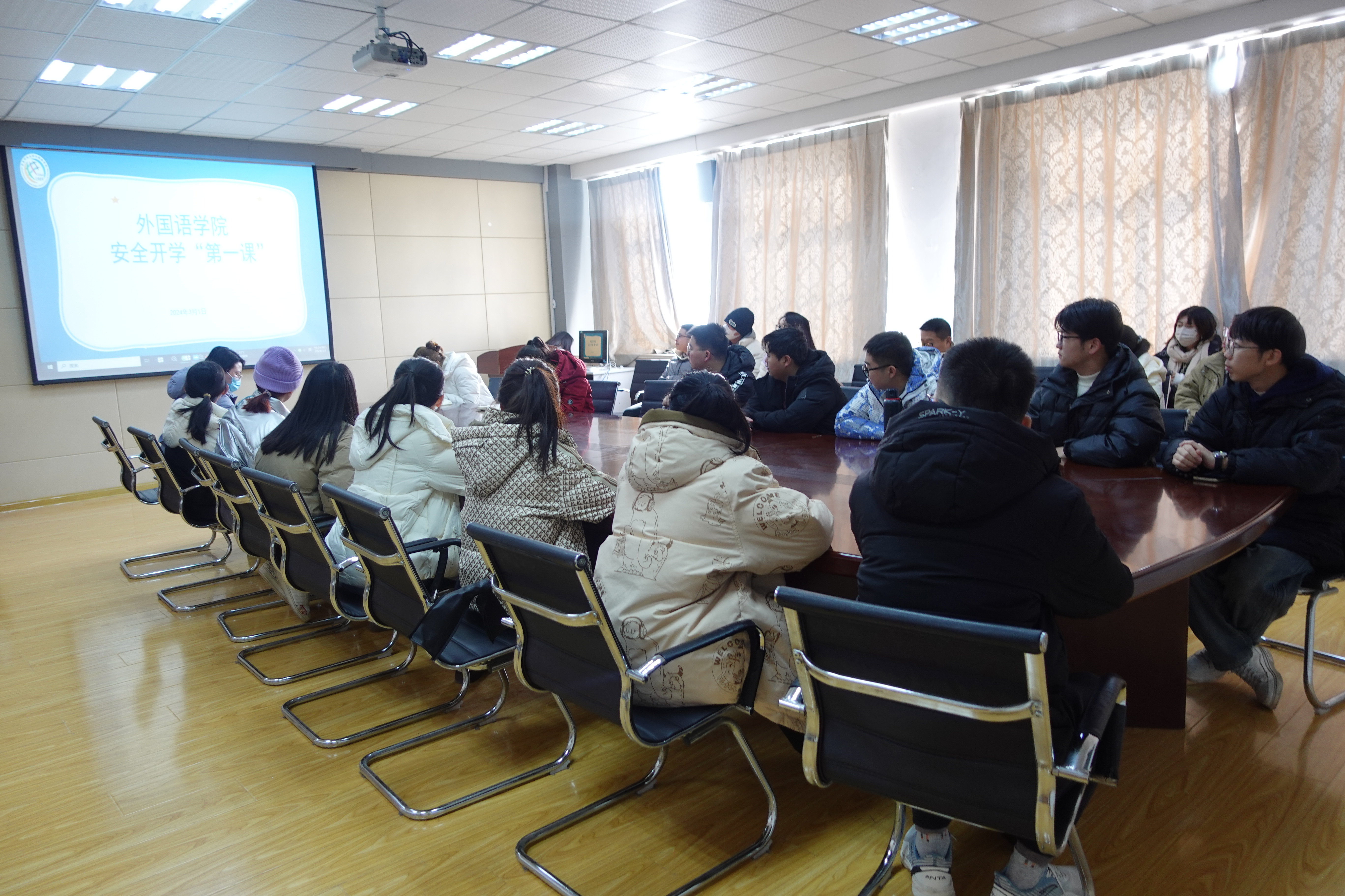 新学期伊始,为全力打造平安校园,增强全体学生的安全意识,营造安全、文明、和谐的校园环境,350vip8888新葡的京集团于3月1日在517会议室组织全体学生开展开学安全“第一课”主题班会。学院各年级辅导员和新葡京官网全体学生参加。