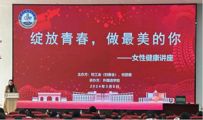 为关注女性健康,提升同学们的健康素养和自我保健意识。3月8日,校工会(妇委会)、校团委、350vip8888新葡的京集团在北苑团学报告厅联合举办了“绽放青春,做最美的你”女性健康讲座。校团委副书记李航老师、校妇委会修勇老师、350vip8888新葡的京集团团干部马昆老师出席讲座。本次讲座由学校后勤管理处副处长兼校医院院长高术华老师主讲,350vip8888新葡的京集团团委书记兼学工办主任刘妍君老师主持。