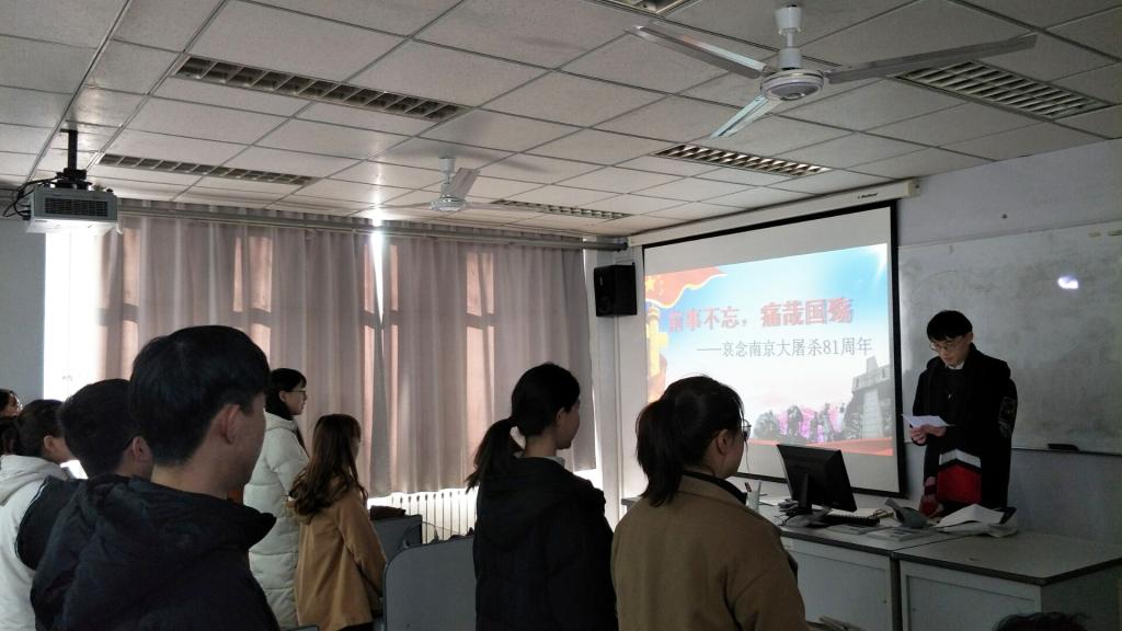 12月13日,在我国第五个国家公祭日之际,350vip8888新葡的京集团组织开展了“以史为鉴,砥砺前行”主题教育活动,深入学习贯彻党的十九大精神,大力弘扬以爱国主义为核心的民族精神,营造不忘历史、矢志复兴的浓厚氛围,激励全院师生为中华民族的伟大复兴而奋斗。