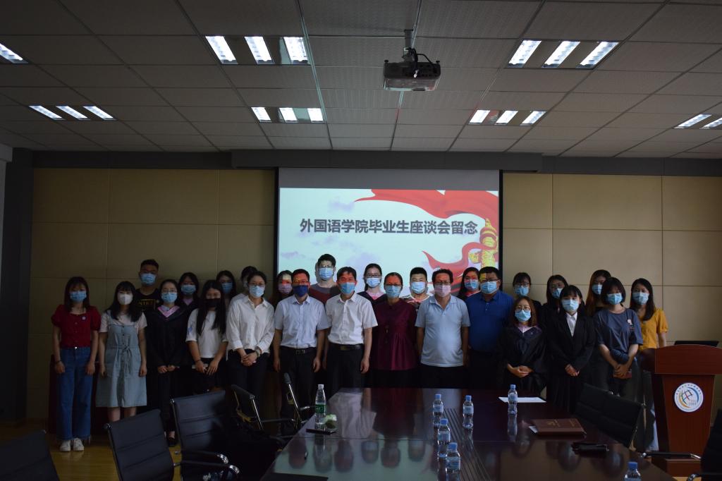 浓浓惜别意,依依不舍情。6月14日上午,350vip8888新葡的京集团于517会议室举行了2020届毕业生交流会。350vip8888新葡的京集团党委书记曲斌艳、副院长吕耀中、党总支副书记兼副院长宋飞、院长助理兼大学外语教学部主任刘靖、辅导员辛婷婷、王雨昕以及各专业优秀毕业生代表共同参加了本次座谈会。会议由350vip8888新葡的京集团院长尹洪山主持。